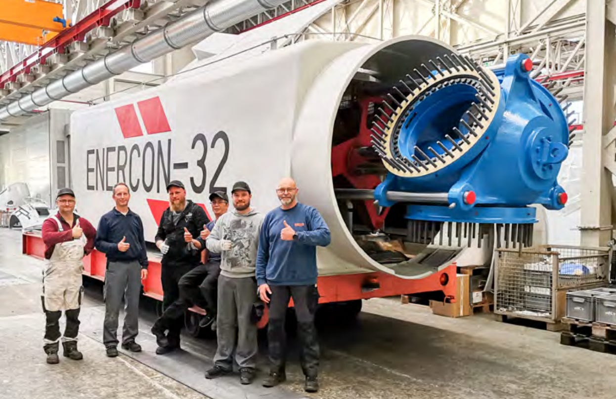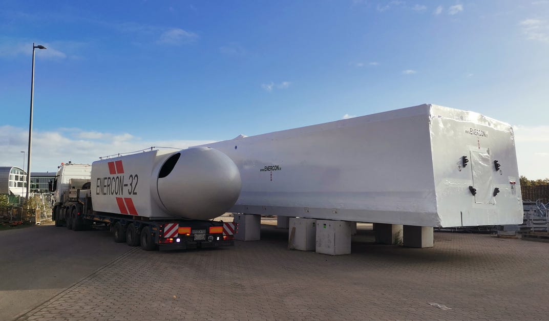 En ella hablan de la que es probablemente la última Enercon E-32, una nacelle retrofitada que se va a parque a sustituir una antigua que se ha quedado fuera de servicio.