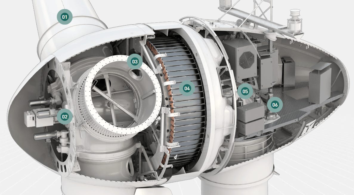 Y por cierto, si habéis visto el vídeo, habreis notado que la forma de su nacelle se parece a la de Enercon (aunque más tubular y menos ovalada). La causa principal es que también utiliza tecnología Direct Drive y la distribución y forma de los componentes “pide” hacer un diseño con esta forma.